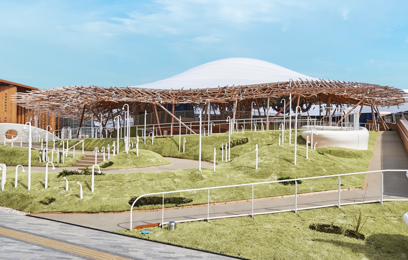 クラゲ館の地上部分は壁がなく、丘の上に大屋根を設けただけの半屋外になっています。